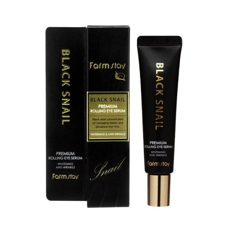 Сироватка для повік FarmStay Black Snail Premium Rolling Eye Serum – має сильну відновлюючу та омолоджуючу дію. Знімає набряклість під очима, зволожує, розгладжує дрібні зморшки. За допомогою ролера тонізує шкіру, покращує мікроциркуляцію крові та проникнення активних компонентів, дарує свіжий вигляд.