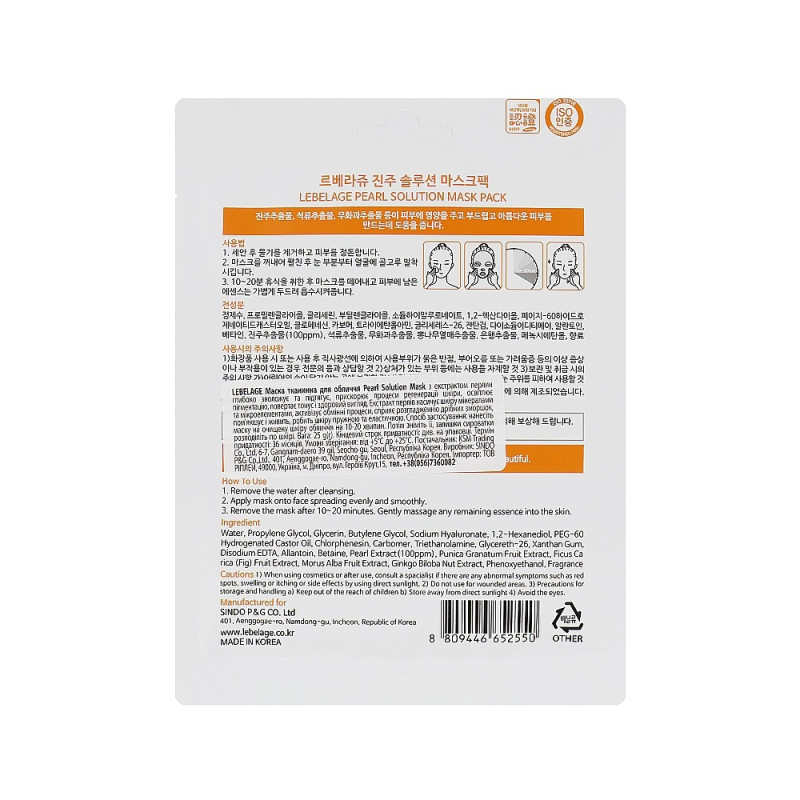 Дія тканинної маски для обличчя Lebelage Pearl Solution Mask