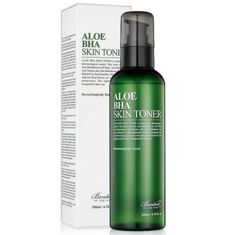 Косметичний засіб корейського бренду Benton Aloe BHA Skin Toner очищує та підтримує здоров'я шкіри обличчя. Воно підійде для будь-якого виду дерми. Тонер швидко відновлює гідробаланс та очищає епідерміс. Захищає від твердої води та сухості.