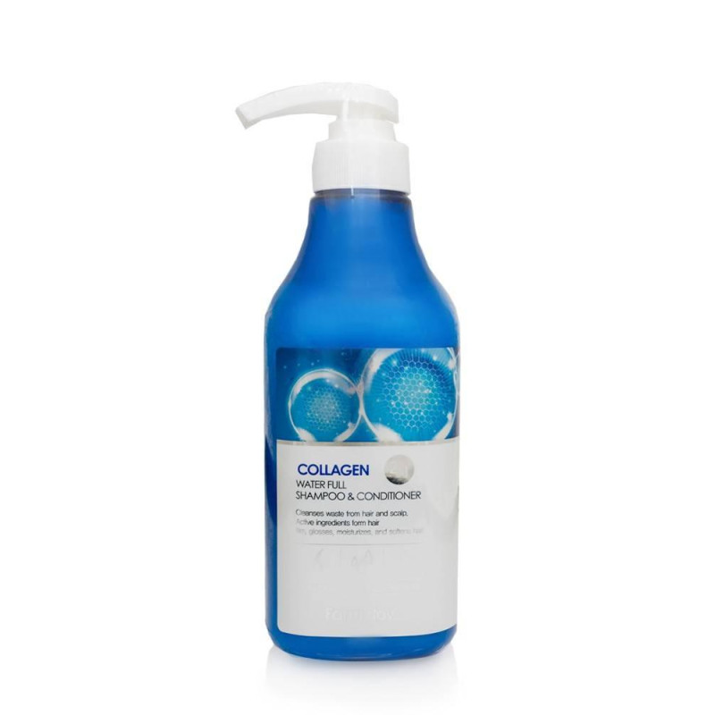 Зволожуюче-зміцнюючий колагеновий шампунь -кондиціонер FARMSTAY COLLAGEN WATER FULL MOIST SHAMPOO & CONDITIONER - універсальний засіб для якісного догляду за волоссям. Прекрасно зволожує волосся, наповнюючи його активними органічними корисними речовинами, відновлюючи пружність пасм. Сприяє зміцненню фолікул.