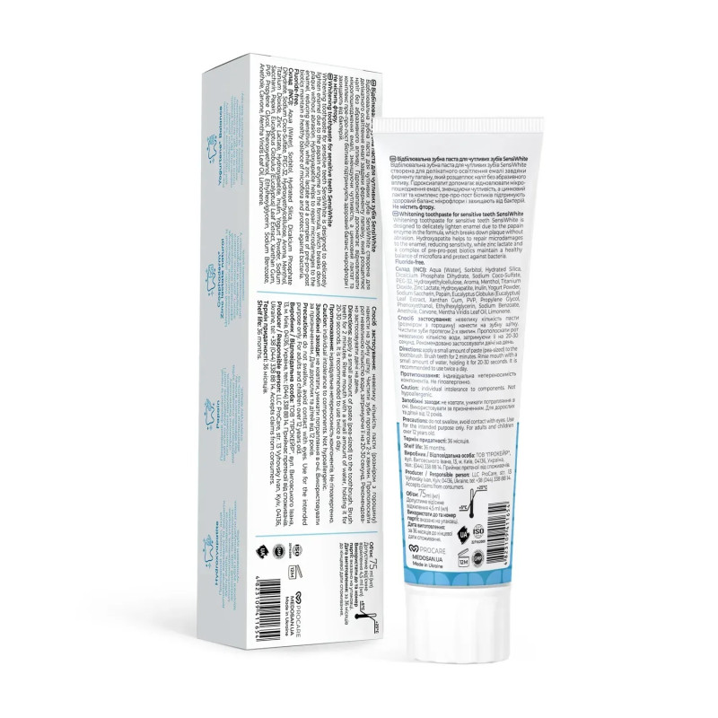 чутливих зубів SensiWhite Medosan поєднує делікатну дію та високий рівень
