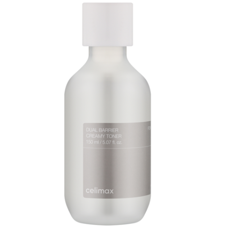Тонер Dual Barrier Creamy Toner - засіб з насиченою живильною формулою, який допомагає відновити та зміцнити гідроліпідний бар'єр. Засіб інтенсивно зволожує, заспокоює та захищає шкіру, роблячи її м'якою та комфортною. В складі є цераміди - відновлюють міжклітинну структуру шкіри, яка виконує захисну та регенерувальну дію. Пантенол - знімає почервоніння та подразнення, зволожує та підтримує відновлення епідермісу. Фітосфінгозин - компонент, який захищає від агресивних зовнішніх чинників та допомагає утримувати вологу. Алантоїн - заспокоює подразнення, відновлює бар'єрні властивості та дбає про чутливу шкіру. Завдяки молочній текстурі засіб обволікає та пом'якшує шкіру. Засіб від Celimax підвищує захисні функції шкіри, запобігає сухості та лущенню.