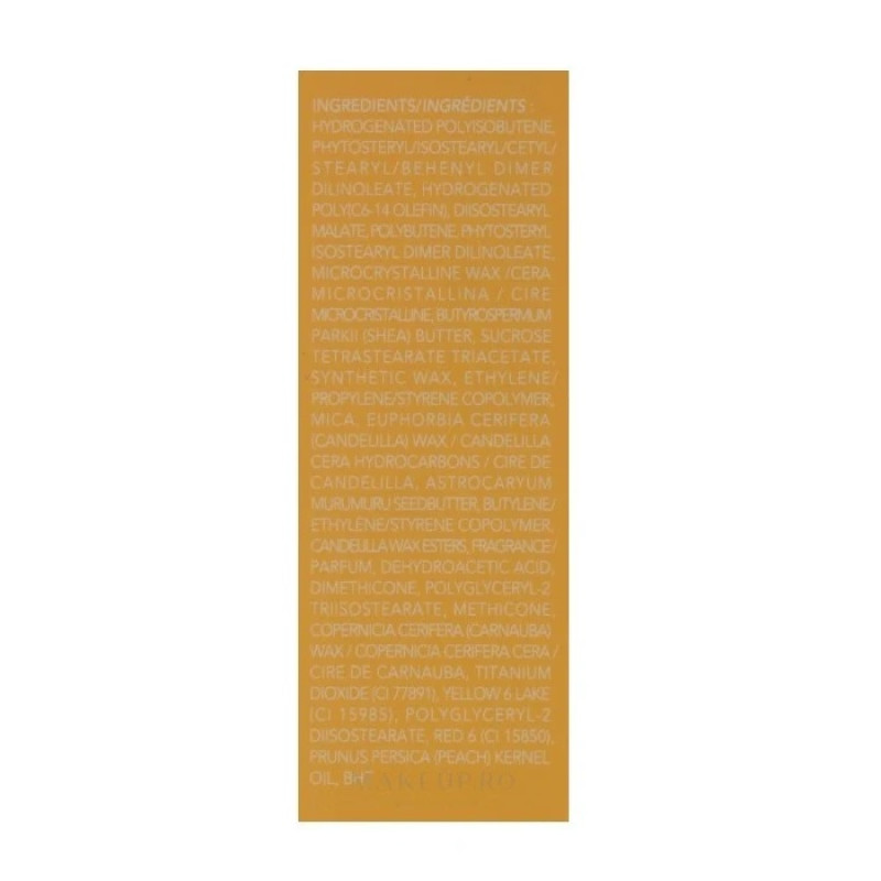 Yellow 6 Lake, Polyglyceryl-2 Diisostearate, Red 6, Peach Kernel Oil, BHT.
