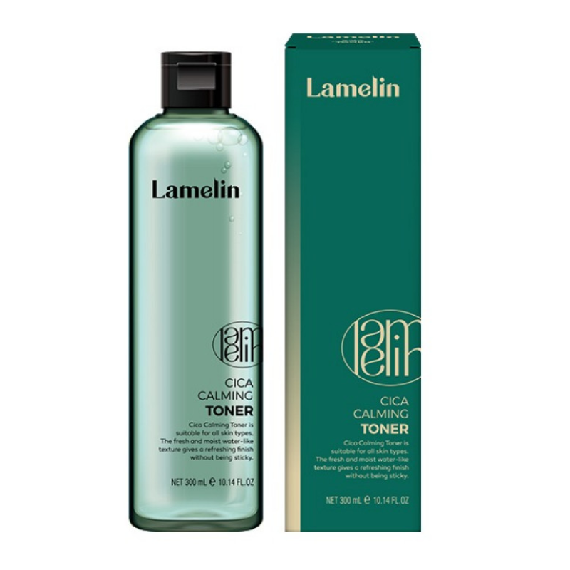 Тонер Cica Calming Toner - миттєво освіжає, заспокоює та надає тонізуючий ефект шкірі, при цьому зберігає еластичність шкіри. Формула тонера бореться з ознаками старіння, усуває сухість, зміцнює захисний бар'єр епідермісу. Тонер відновлює баланс шкіри після очищення і підготовлює до наступних етапів догляду, посилюючи ефективність інших засобів. В складі є екстракт центели азіатської - має потужну загоювальну дію, знімає запалення, відновлює бар'єрні функції тіла, зменшує чутливість і допомагає боротися з куперозом. гіалуронова кислота - глибоко зволожує, утримує вологу та формує на шкірі захисний бар'єр, що запобігає зневодненню. Екстракт гамамелісу - антибактеріальні і протизапальні властивості, звужує пори і зменшує прояв жирності. Екстракт зеленого чаю - нормалізує обмінні процеси, заспокоює подразнення, знімає почервоніння та зміцнює природний імунітет шкіри. Засіб від Lamelin покращить стан шкіри, зніме почервоніння, розгладить зморшки та зміцнить захисний бар'єр шкіри.