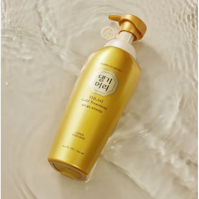 Кондиціонер Yula Gold Treatment - на основі східних трав, які забезпечують глибоке зволоження, живлення та відновлення волосся. Формула кондиціонера проявляє захист не лише на волосся, а і на шкіру голови, він заспокоює, знімає подразнення, нормалізує вироблення себуму та стимулює здоровий ріст волосся. Екстракт хризантеми - зміцнює волосся, стимулює оновлення клітин шкіри голови, забезпечує вітаміну підтримку. Екстракт кореня імбиру - активізує ріст волосся , зміцнює його структуру, знімає подразнення та забезпечує антиоксидантний захист. Екстракт кореня женьшень - стимулює волосяні фолікули, зменшує випадіння і робить волосся густим та блискучим. Екстракт алое вера - заспокоює, зволожує і пом'якшує шкіру голови, що зменшує свербіж та подразнення. Засіб від DAENG GI MEO RI створює захисний бар'єр, що запобігає ламкості та подальшим пошкодженням.