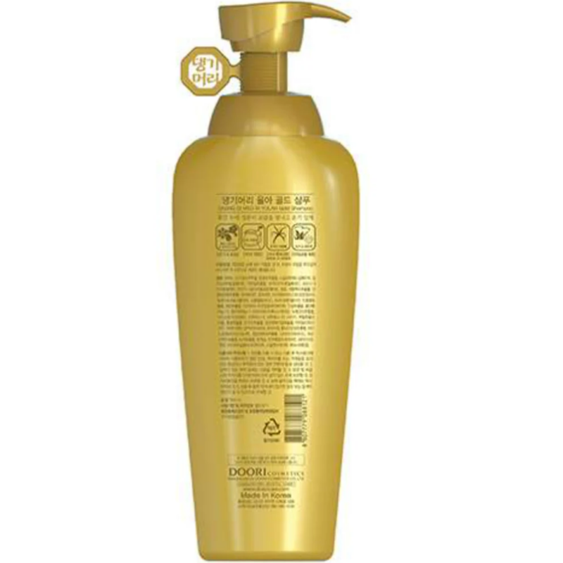 Шампунь Yula Gold Shampoo - створений за рецептом поєднання цінних трав, які відновлюють волосся після фарбування або впливу зовнішніх чинників.В складі є екстракт женьшеню, який інтенсивно відновлює волосся, що втратило блиск. Екстракт хризантеми насичує волосся вітамінами й мінералами, зміцнюючи його структуру. Імбирний корінь - нормалізує жирність, стимулює волосяні фолікули та покращує ріст волосся.Екстракт японської жимолості - багатий на антиоксиданти і натуральні олії, які глибоко зволожують та живлять волосся, роблять його м'яким і слухняним. Шампунь від DAENG GI MEO RI відновлює м'якість та шовковистість, а також дарує здоровий блиск волоссю.