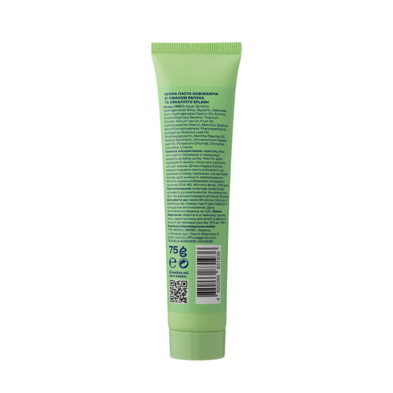 карієсу. Крім того, паста має ніжний свіжий аромат і смак яблука та евкаліпта,