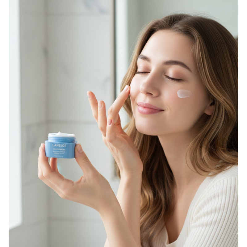 Зволожуючий крем для обличчя Laneige Water Bank Blue Hyaluronic Moisture Cream — це інноваційне рішення для інтенсивної гідратації шкіри, розроблене експертами корейського бренду Laneige. Головною особливістю продукту є блакитна гіалуронова кислота з наднизькою молекулярною масою, яка в 2000 разів менша за звичайну, що дозволяє їй проникати в найглибші шари дерми. Цей зволожуючий крем ідеально підходить для нормальної, сухої та чутливої шкіри, миттєво усуваючи відчуття стягнутості та лущення. Він зміцнює захисний бар'єр, заспокоює подразнення та дарує обличчю здорове сяйво, підтримуючи оптимальний рівень вологи до 100 годин.