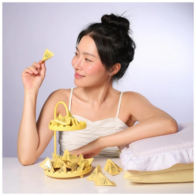 Способ применения: Нанесите маску на очищенную кожу лица после использования тонера в качестве последнего шага вечернего ухода. Вскройте саше-пирамидку и распределите питательный состав по лицу похлопывающими движениями до полного впитывания. Маска работает во время сна, поэтому ее не нужно смывать сразу после нанесения. На утро удалите остатки средства привычным способом при помощи теплой воды. Благодаря компактному формату, средство удобно брать с собой в поездки. Для достижения максимального эффекта «фарфоровой кожи» и стабильного осветляющего результата используйте маску курсом 2–3 раза в неделю, не забывая наносить солнцезащитный крем в дневное время.