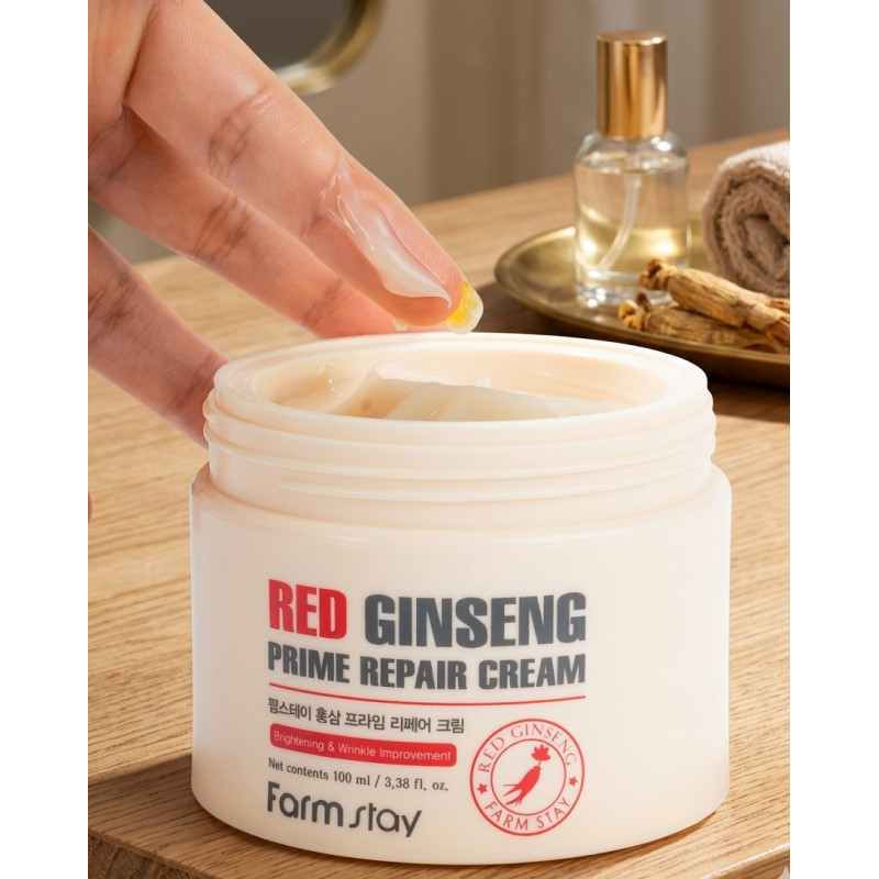 Восстанавливающий крем для лица Farmstay Red Ginseng Prime Repair Cream представляет собой мощный регенерирующий уход, основанный на многовековых традициях использования восточных лекарственных трав. Специалисты бренда Farmstay создали формулу, которая эффективно решает проблему потери эластичности, тусклого тона и глубокой обезвоженности. Главный активный компонент — красный женьшень — наполняет клетки жизненной энергией, ускоряет обменные процессы и способствует быстрому заживлению микроповреждений. Данный крем обладает выраженным лифтинг-эффектом, уплотняет структуру кожи и создает невидимую защитную вуаль, препятствующую испарению влаги и агрессивному воздействию факторов внешней среды.