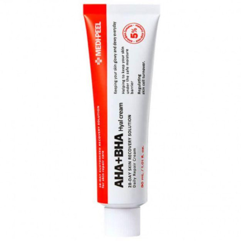 Крем-пилинг AHA BHA 28 Days Hyal Cream всего за месяц преобразит кожный покров, сделает его моложе, свежее, мягче. Препарат осветляет пигментацию, отшелушивает омертвевшие эпителиальные чешуйки, очищает поры, предупреждает возникновение угревой сыпи, комедонов, покраснений. Активные ингредиенты оказывают иммуномоделирющее, защитное, питательное воздействие.
