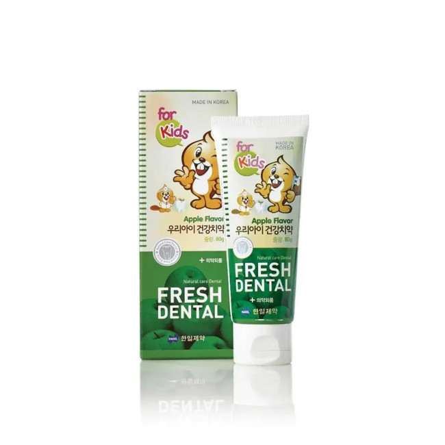 Зубная паста для детей со вкусом яблок Hanil Fresh Dental Children apple создана с учетом лучших натуральных и активных компонентов, обеспечивающих эффективный уход за детской полостью рта. Она содержит фосфат калия, который способствует укреплению эмали и защищает зубы от разрушения, а также фторсодержащий натрия мононефторфосфат, активно борющийся с кариесом и предотвращающий появление новых повреждений. В составе присутствует сахар, полученный из плодов, деликатно очищающий зубы и освежающий дыхание, не пересушивая слизистую.