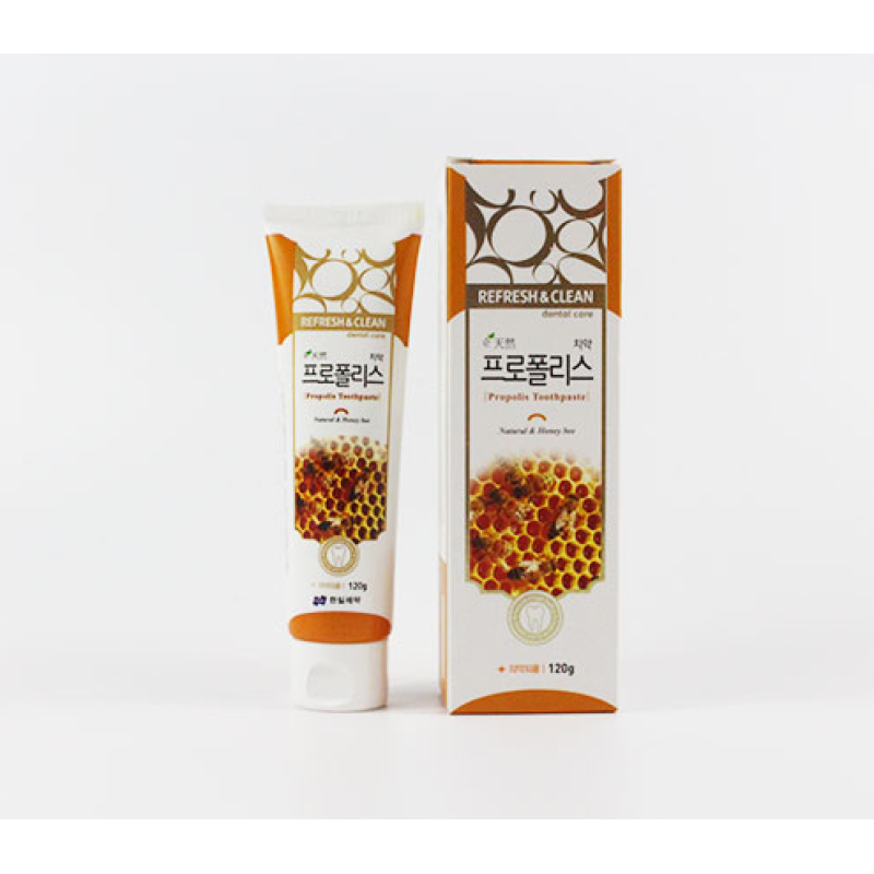 Зубная паста REFRESH & CLEAN Propolis Toothpaste - помогает сохранить чистоту зубной эмали и поверхности десен, обеспечивая длительную свежесть дыхания, предотвращает образование кариеса и зубного камня, а также препятствует развитию воспалительных процессов в полости рта. В составе есть прополис - мощное антиоксидантное средство, укрепляющее эмаль и ткани десен, дарящее зубам здоровый естественный блеск. Средство подходит для ежедневного использования, при этом проявляет свой профилактический и лечебный эффект, благодаря чему подходит даже для чувствительных зубов. Зубная паста обеспечивает свежесть дыхания и устранение неприятного запаха, способствует регенерации тканей десен, поддерживает их здоровье и упругость, а также обладает успокаивающими свойствами, уменьшает чувствительность и предотвращает раздражения. Средство от Hanil - это естественная защита, свежесть и забота о улыбке.
