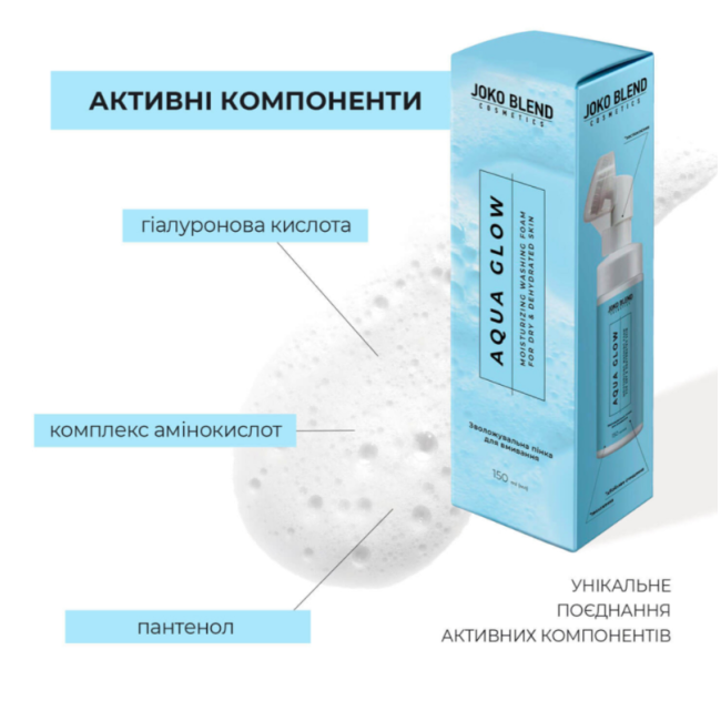 Зволожувальна пінка для вмивання з гіалуроновою кислотою Aqua Glow Joko Blend 150 мл