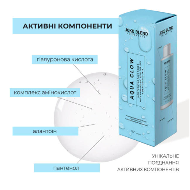 Зволожувальний тонер для обличчя з гіалуроновою кислотою Aqua Glow Joko Blend 150 мл