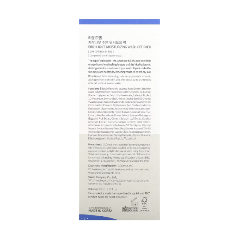 Увлажняющая смывная маска Round Lab Birch Juice Moisturizing Washoff Pack помогает избавиться от сухости и обезвоживания, обеспечивая интенсивное увлажнение и упругость. Она способствует обновлению, поддерживает тонус и естественный баланс влаги. Маска придает свежесть и здоровый вид за короткое время, можно использовать даже для чувствительной кожи.