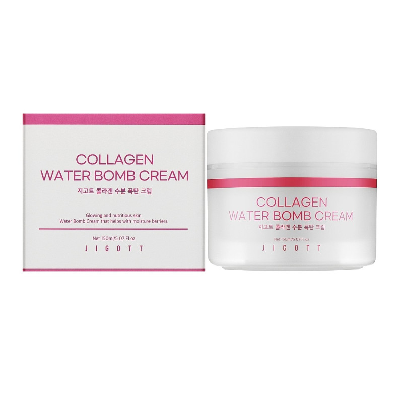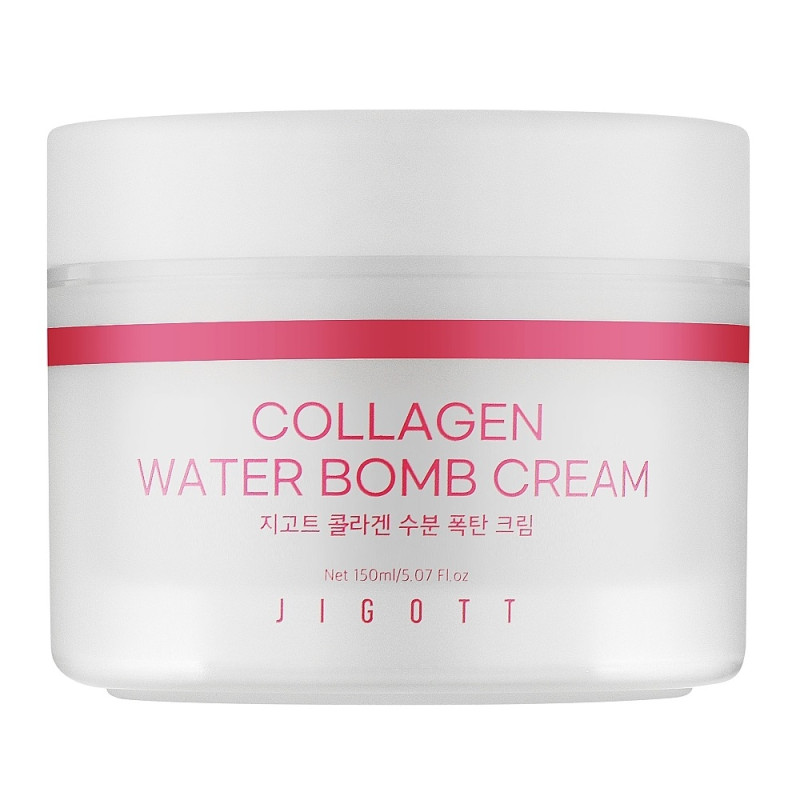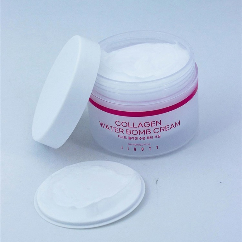 Увлажняющий крем для лица с коллагеном Jigott Collagen Water bomb Cream имеет легкую бархатную текстуру и обеспечивает комплексный уход за кожей.