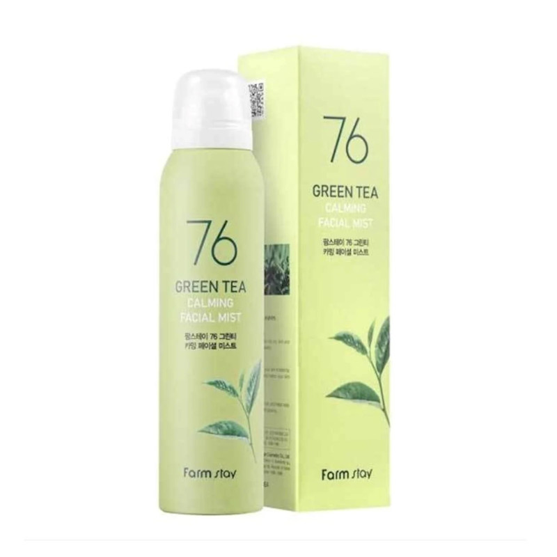 Увлажняющий мист с зеленым чаем FarmStay 76 Green Tea Calming Facial Mist – это не просто освежающий спрей, а настоящий ритуал ухода с мультиактивной формулой, сочетающей силу гиалуроновой кислоты, успокаивающих компонентов и легких силиконов для мгновенного обновления кожи.